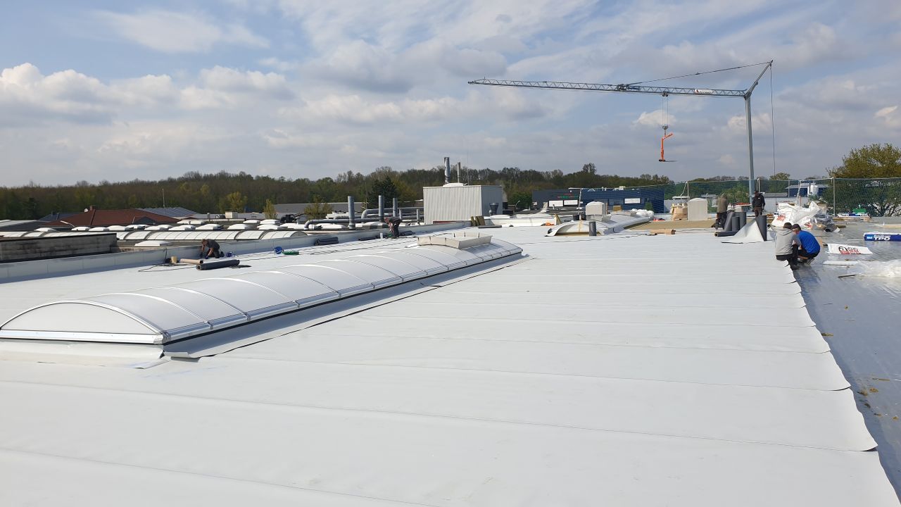 Dachtrapezbleche, Dachdichtung einschl. Entwässerung,