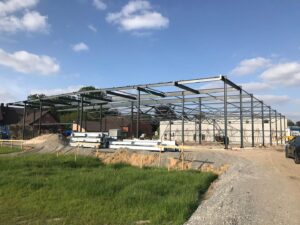 Stahlkonstruktion als Hallentragwerk, einschl. Vordach,