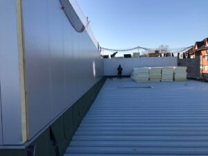 einschl. Vordach, Dachtrapezbleche, Thermowandfassade,